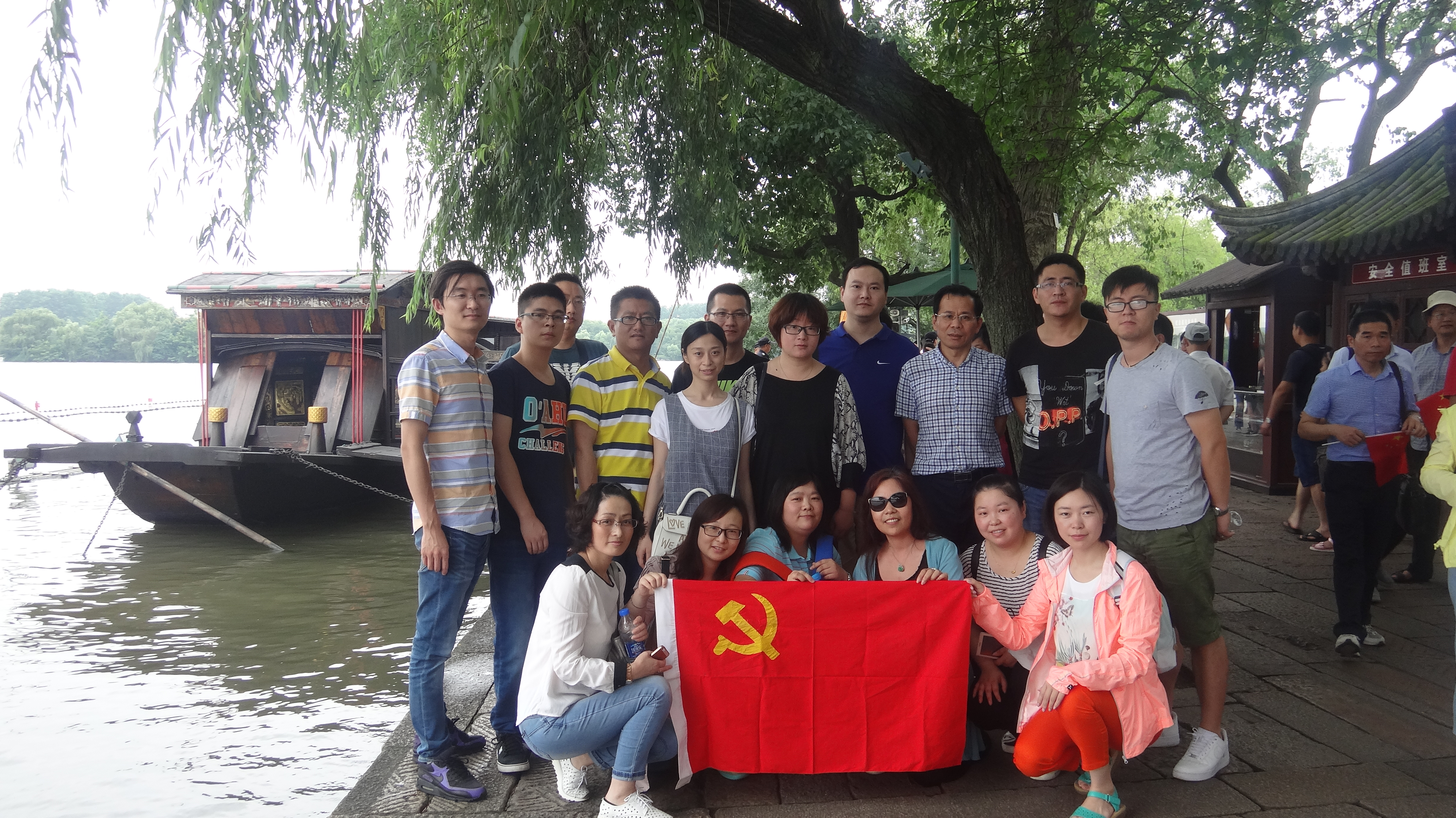 南湖是中国共产党的诞生地,中国共产党的第一次代表大会就是在这里成功闭幕的,一条南湖的游船因而承载了一个民族的光明和希望,革命先烈的斗争历程和不屈精神。7月2日上午在院支部书记曾群的带领下,大家一起参观了位于嘉兴南湖上的“红船”,听导游讲解了关于中共一大的“红船故事”。在南湖纪念馆前,面对鲜艳的党旗,党员们重温了入党誓词。庄严神圣的宣誓仪式意味着一种政治身份和社会责任;也是一种督促,督促我们勿忘初心:时刻谨记党员身份,起模范带头作用,永保建党时中国共产党人的奋斗精神。