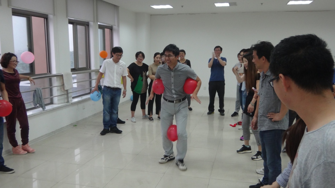 月29日,设计院全体员工欢聚祥云楼三楼活动室,举行了迎国庆趣味运动会。约50人参加运动会,活动分为三个项目:结对而行,企鹅漫步,心心相印,活动中欢声不断、笑语连连,放松了自我,也为即将来临的国庆节增添了节日的气氛。