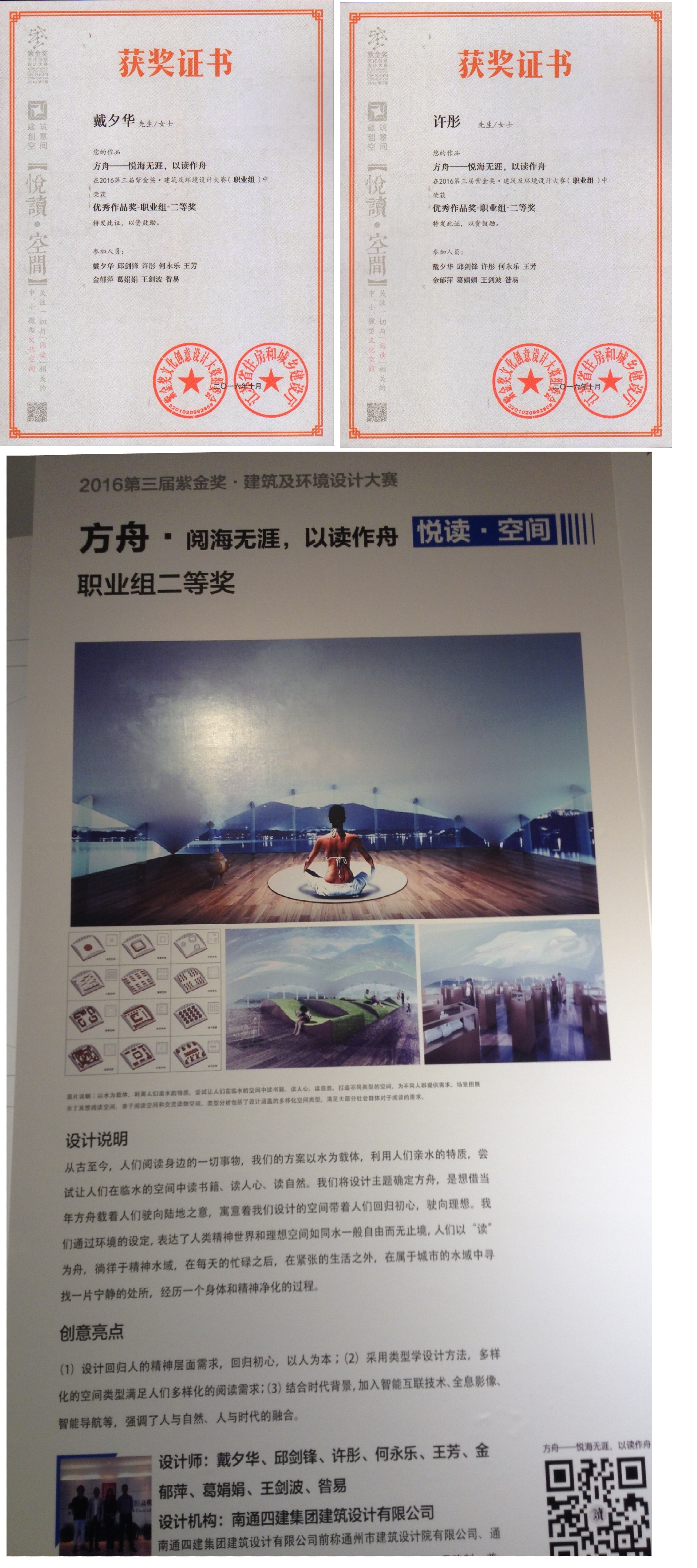 第三届紫金奖·建筑及环境设计大赛”评选结果。我院参赛作品“方舟——悦海无涯,以读作舟”获得职业组二等奖。